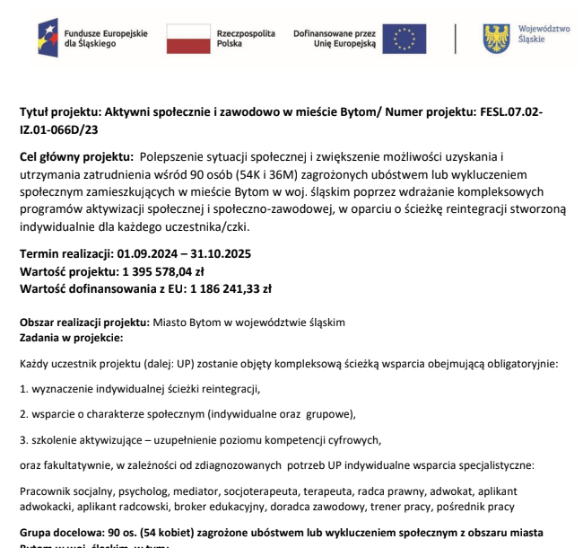 - udziela wsparcia osobom w trudnych sytuacjach życiowych poprzez porady psychologiczne oraz porady ekonomiczne, doradztwo zawodowe, wsparcie młodych osób w ekonomii społecznej.