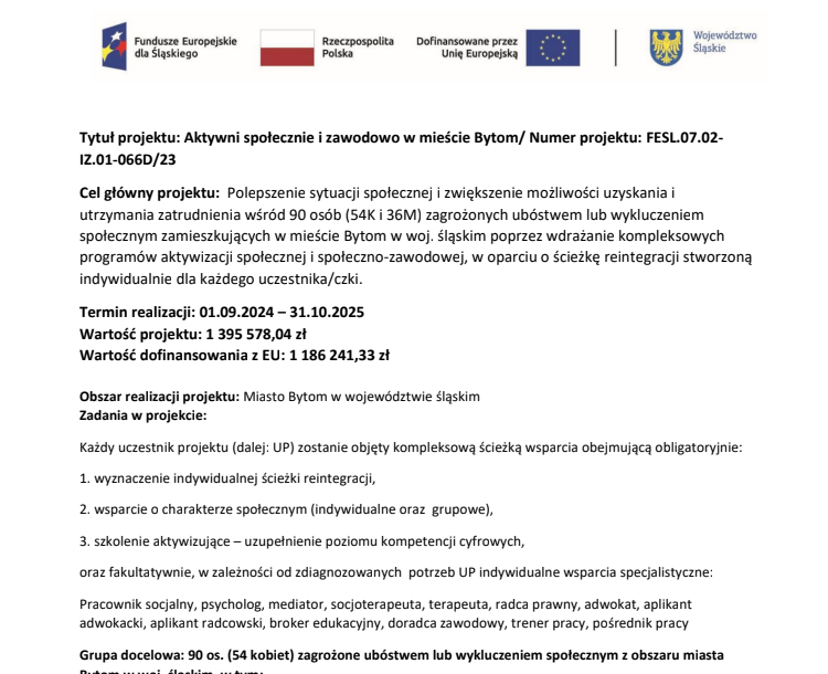 Aktywni społecznie i zawodowo w mieście Bytom Formularz rekrutacyjny. Kliknij by pobrać.